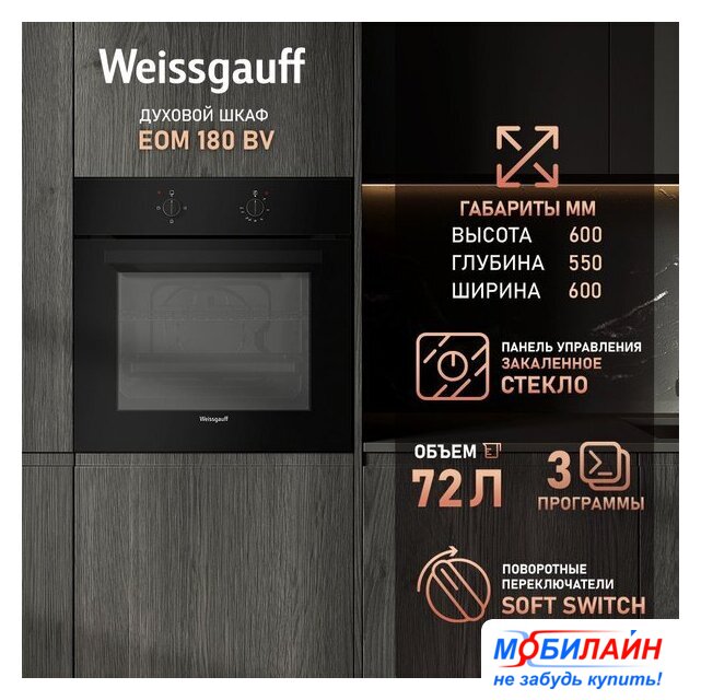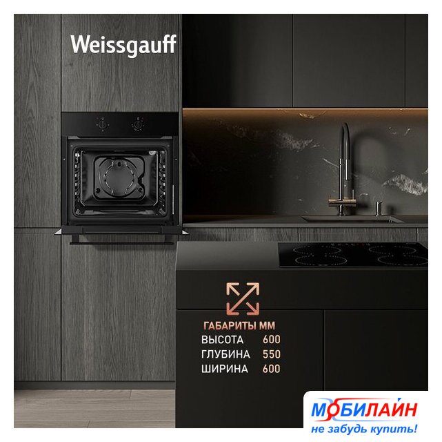 электрический с конвекцией, объем 60 л, 8 режимов, очистка ручная, проволочные направляющие, энергопотребление A