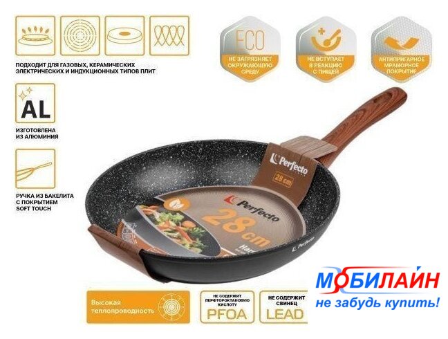 стандартная, алюминий, покрытие минеральное, 26 см, бакелитовая ручка