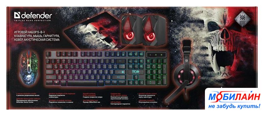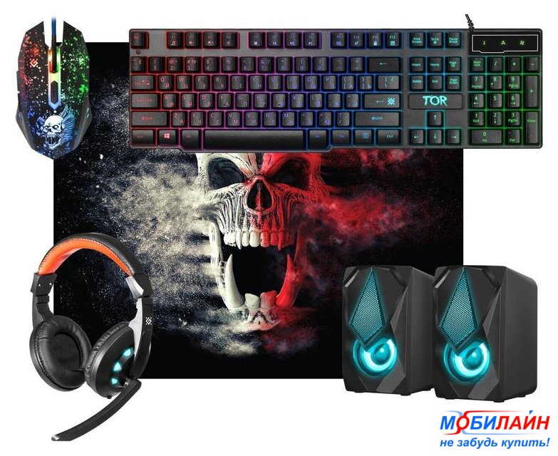 игровой набор, для ПК, клавиатура + мышь с ковриком + наушники, русская раскладка: да