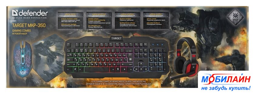 Состав набора | клавиатура + мышь с ковриком + наушники |