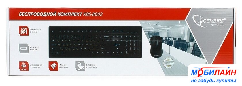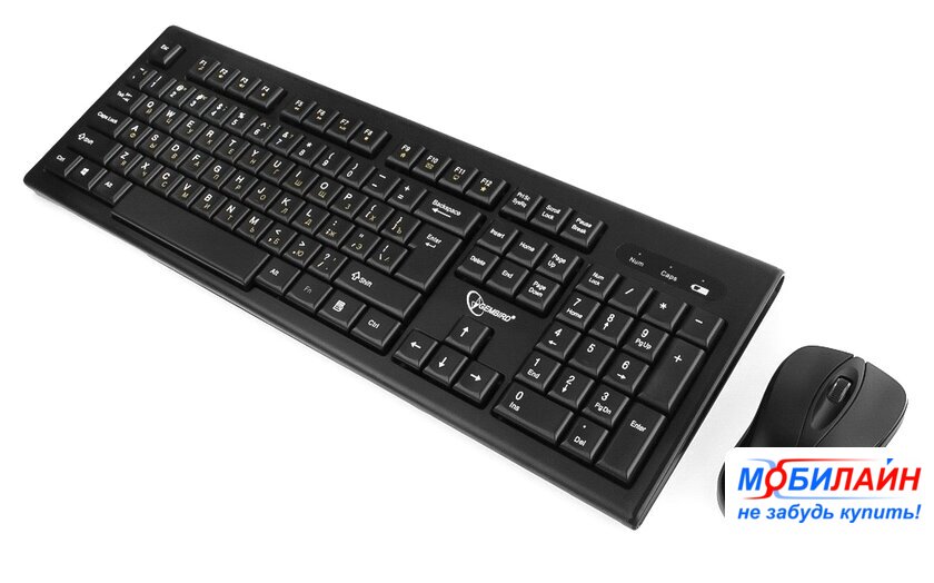 клавиатура + мышь для ПК, мышь беспроводная радио (сенсор оптический), клавиатура беспроводная радио, цвет мыши: черный