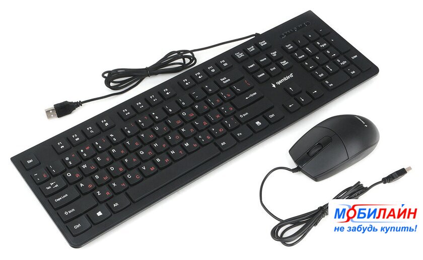 клавиатура + мышь для ПК, мышь проводная USB (сенсор оптический), клавиатура USB, цвет черный