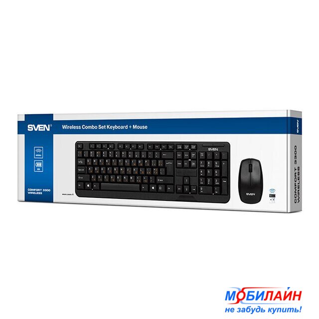 клавиатура + мышь для ПК, мышь беспроводная радио (сенсор оптический), клавиатура беспроводная радио, цвет мыши: черный