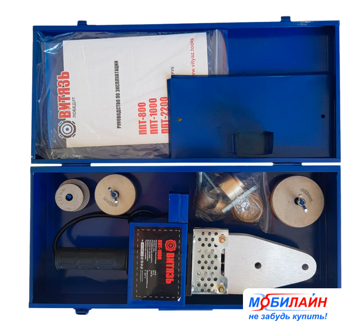 Комплектация | - Аппарат для сварки труб- Подошва- Насадки: 20,25,32,40,50,63 мм.- Инструкция- Ключ |