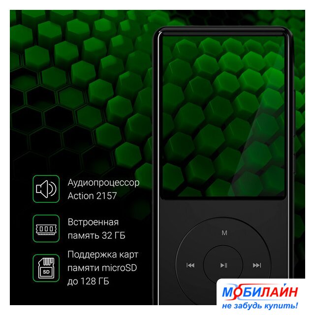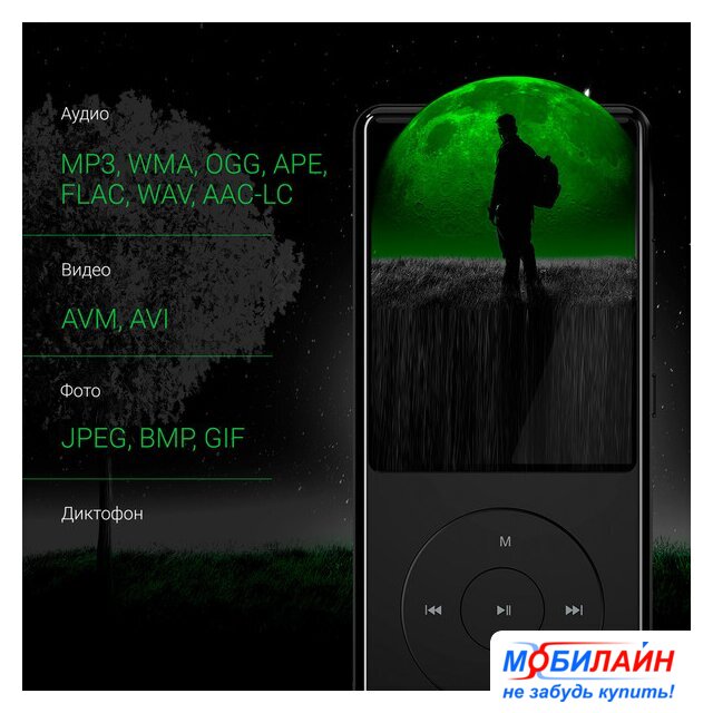 8 ГБ, экран 0.8" монохромный 128 x 64, карты памяти microSD, радио