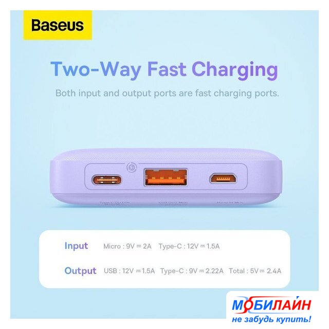 10000 мА·ч (37 Вт·ч), выходы: 2 x 5V/9V/10V/12V (3000 мА), быстрая зарядка
