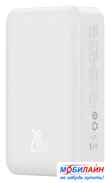 10000 мА·ч (38.5 Вт·ч), выходы: 1 x 5V/9V/12V/20V (3000 мА), быстрая зарядка, беспроводная зарядка, поддержка MagSafe, крепление на смартфон, подставка, площадка для умных часов