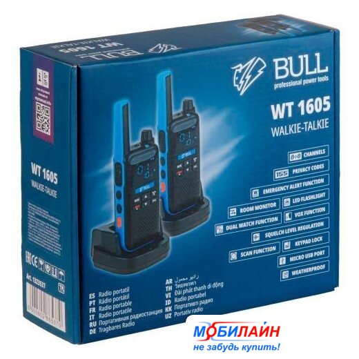 Дополнительные принадлежности | Радиостанция - 2 шт.;Батарея Li-ion (3,7 В / 1800 мАч) - 2 шт.;Подставка для зарядки - 2 шт.;Кабель USB: 2 шт.;Дополнительные крышки - 2 шт.;Зажимы для крепления на ремне: 2 шт.; |