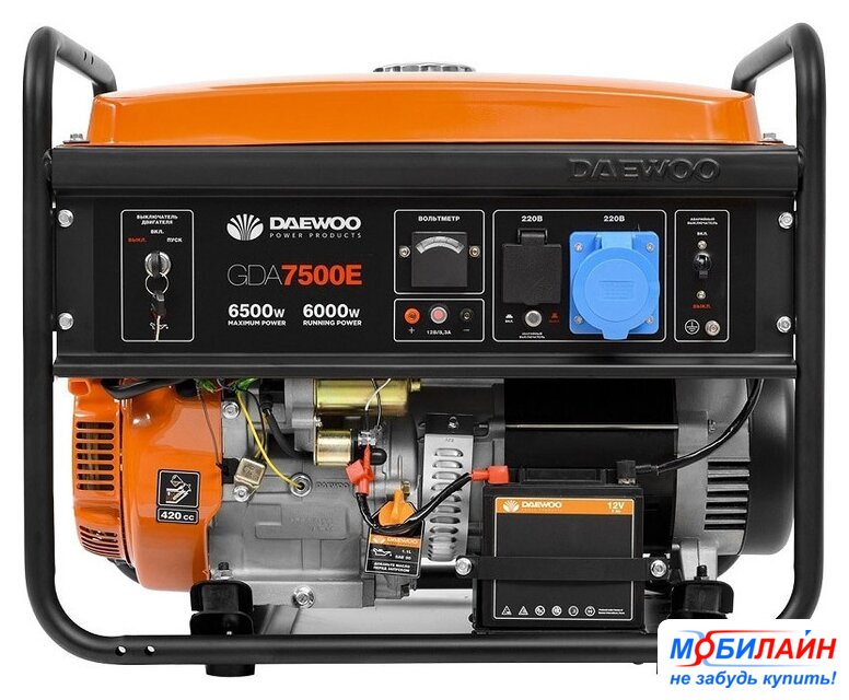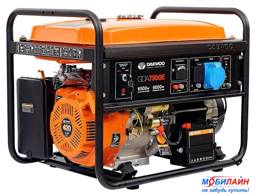 бензиновый, исполнение: открытое, 7.5 кВт, запуск: ручной/электростартер, время непрерывной работы: 5 ч, 65 кг