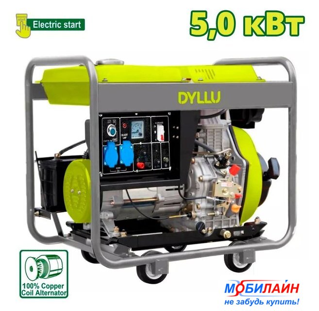 дизельный, исполнение: открытое, 5 кВт, запуск: ручной/электростартер, время непрерывной работы: 5.1 ч, 105 кг