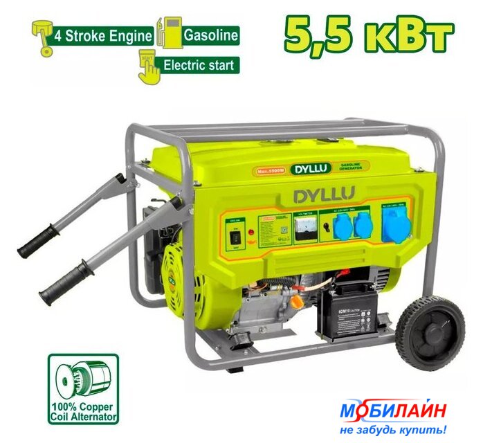 бензиновый, исполнение: открытое, 5 кВт, запуск: ручной/электростартер, время непрерывной работы: 8 ч