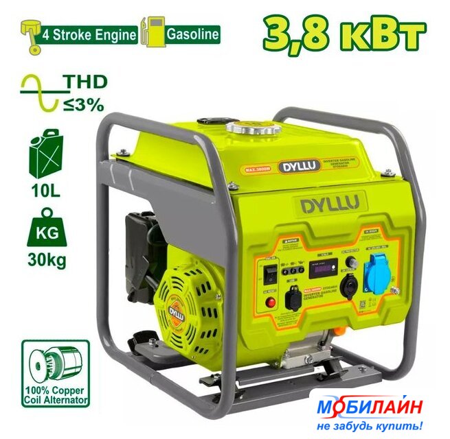 бензиновый, исполнение: открытое, 4 кВт, запуск: ручной, время непрерывной работы: 4.5 ч, 29 кг