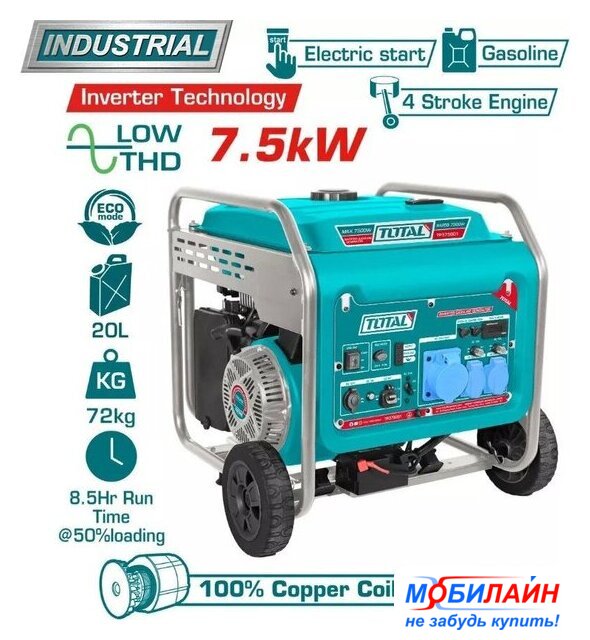 бензиновый, исполнение: открытое, 7.5 кВт, запуск: ручной/электростартер, 95 кг