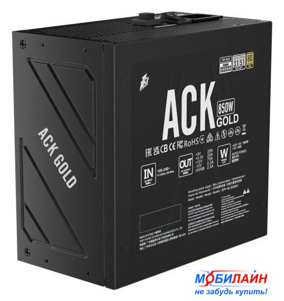 ATX 850 Вт, активная PFC, золотой сертификат, вентилятор 1x120 мм, модульные кабели, 1x 12В 70.8А, 1x PCIe Gen5