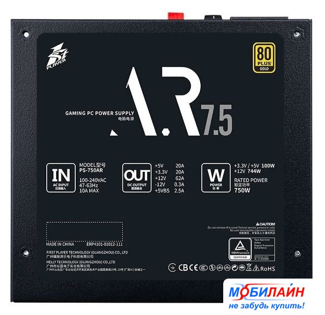 750 Вт, активная PFC, КПД 86%, базовый сертификат, вентилятор 1x120 мм, 12V 58 А