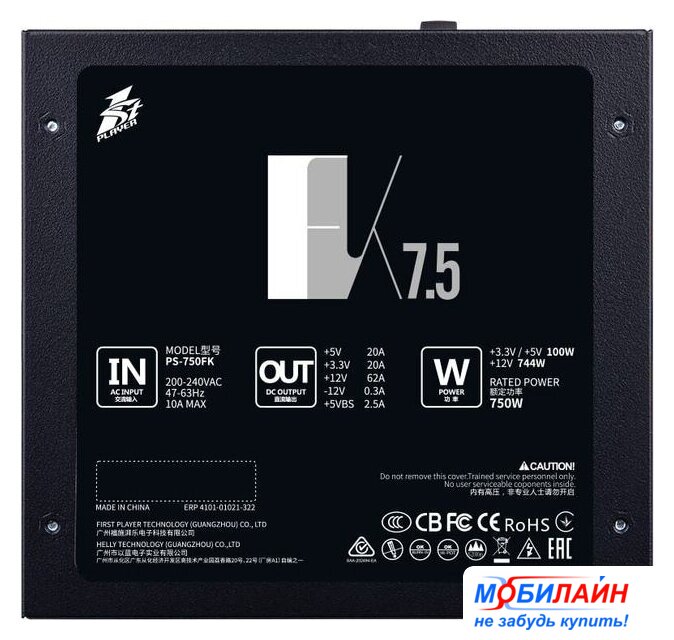 ATX 750 Вт, вентилятор 1x120 мм, 1x 12В 58А