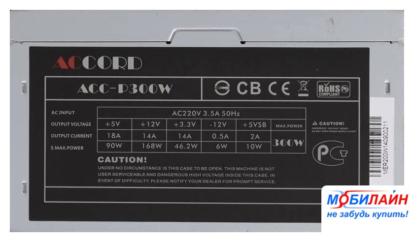 | Размер вентилятора блока питания | 80 мм |