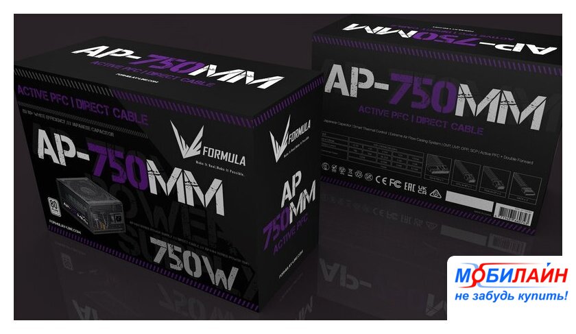 750 Вт, активная PFC, КПД 83%, вентилятор 1x120 мм, 12V 60 А