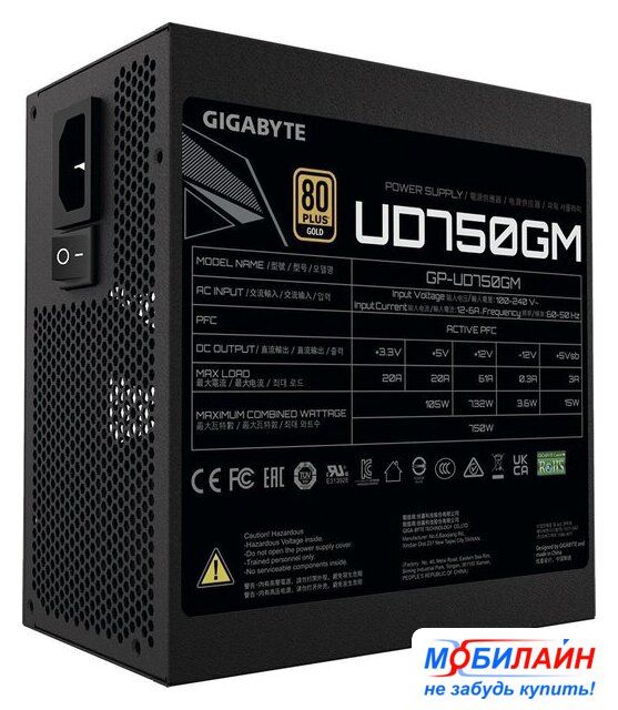 ATX 750 Вт, активная PFC, золотой сертификат, вентилятор 1x140 мм, модульные кабели, 1x 12В 20А, 1x PCIe Gen5