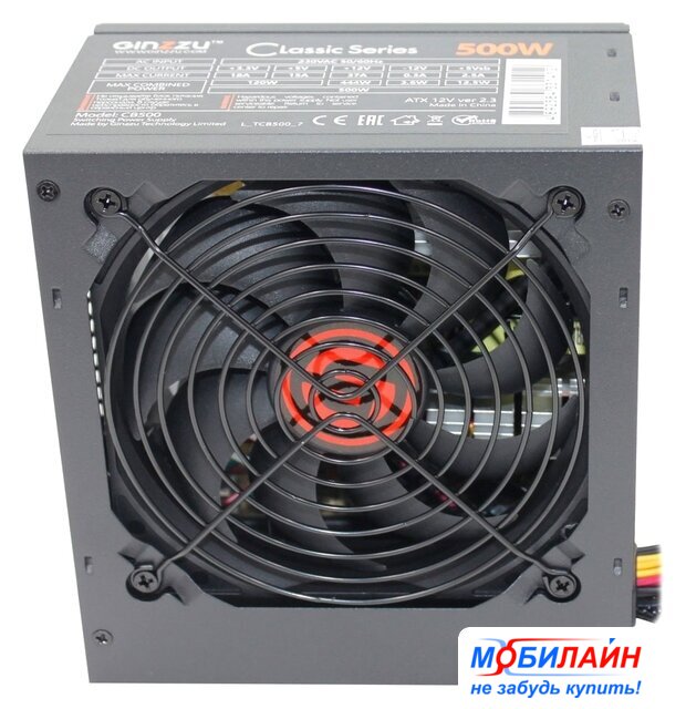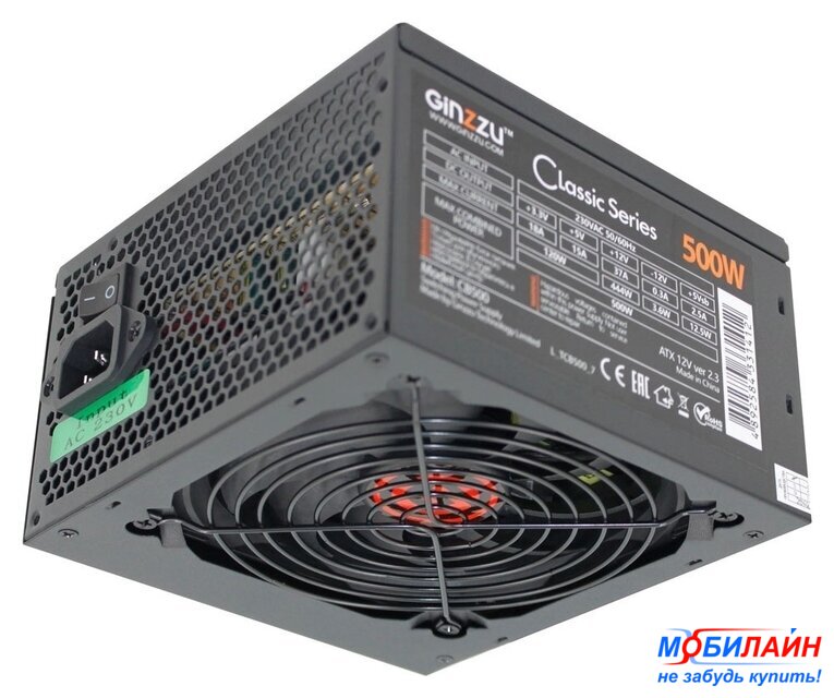 ATX 500 Вт, вентилятор 1x80 мм, 1x 12В 38А