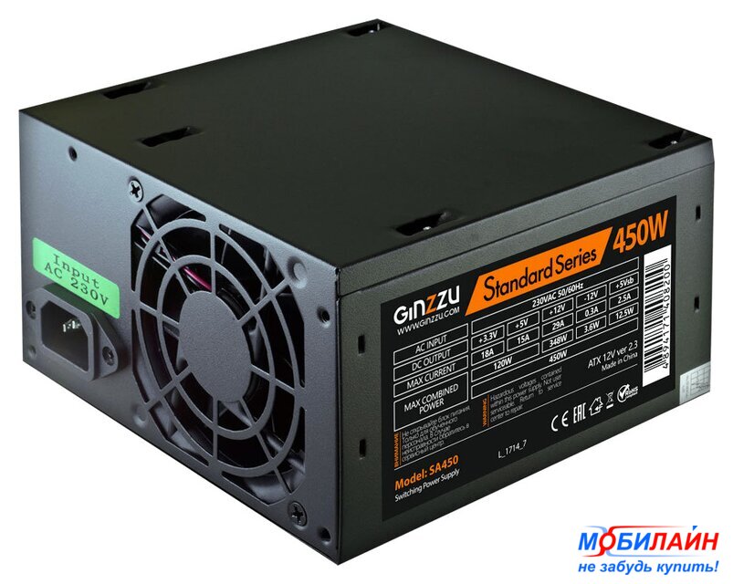 ATX 550 Вт, вентилятор 1x120 мм, 1x 12В 42А