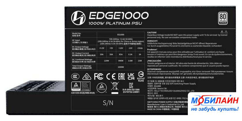 ATX 1000 Вт, активная PFC, золотой сертификат, вентилятор 1x120 мм, модульные кабели, 1x 12В 83.3А, 1x PCIe Gen5