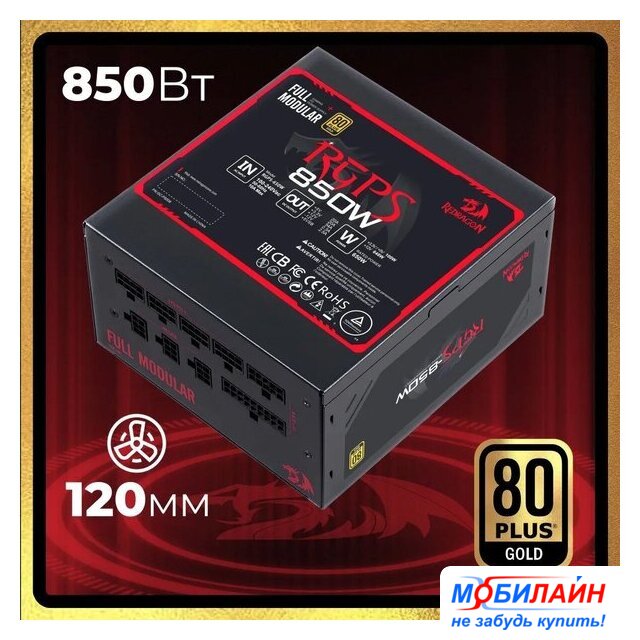 ATX 850 Вт, активная PFC, золотой сертификат, вентилятор 1x120 мм, 1x 12В 70.5А, 1x PCIe Gen5
