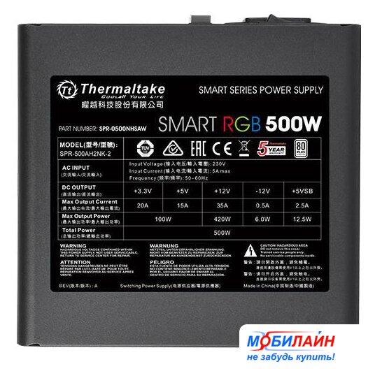 ATX 500 Вт, активная PFC, базовый сертификат, вентилятор 1x120 мм, 1x 12В 40А