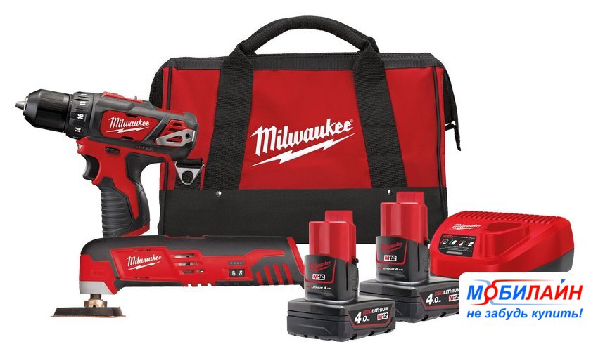 Комплектация | - Аккумуляторная безударная дрель-шуруповерт Milwaukee M12 BDD-0 (Арт. 4933441930) - 1 шт- Аккумуляторный многофункциональный инструмент Milwaukee C12 MT-0 (Арт. 4933427180) - 1 шт- Аккумулятор Milwaukee M12 B4 4.0 Ач (Арт. 4932430065) - 2 шт- Зарядное устройство Milwaukee C12 C (Арт. 4932352000) - 1 шт- Инструкция по эксплуатации- Сумка для инструмента |