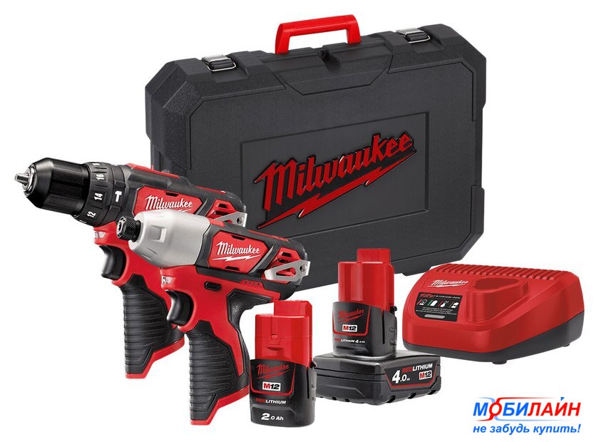 Комплектация | - дрель-шуруповерт Milwaukee M12 BPD-0 - винтоверт Milwaukee M12 BID-0- 1 акб 2 Ач- 1 акб 4 Ач- кейс |