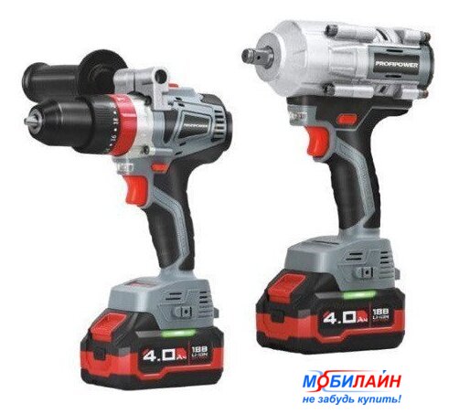 Комплектация | - Гайковерт на 900Нм E0087 ProfiPower T-900N;- Шуруповерт E0186 ProfiPower MKDHP-18V- Адаптер HEX;- Набор головок 17/19/21 мм;- Магнитная бита;- Дополнительная рукоятка;- Аккумуляторы - 4,0 Ач - 2шт;- Зарядное устройство;- Кейс;- Инструкции с гарантийным талоном. |