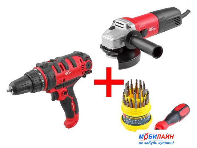 Комплектация | Одноручная углошлифмашина WORTEX AG 1210-1 в коробкеДрель-шуруповерт WORTEX DR 1025 в коробкеНабор бит 31 пр. Wortex |