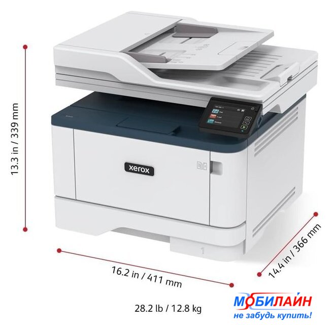 МФУ, лазерный, ширина бумаги до 356 мм, черно-белый, формат A4 (210x297 мм), скорость ч/б печати 29 стр/мин, разрешение 600 dpi, LAN, Wi-Fi