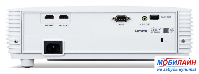 матрица DLP, UHD (3840x2160), ламповый, яркость 3800 ANSI лм, контраст 10000:1, расстояние 1-7.5 м, экран 30-300"