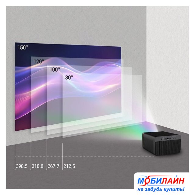 портативный, матрица DLP, FullHD (1920x1080), ламповый, яркость 350 ANSI лм, контраст 200000:1, экран 30-300", LAN, Wi-Fi, Airplay