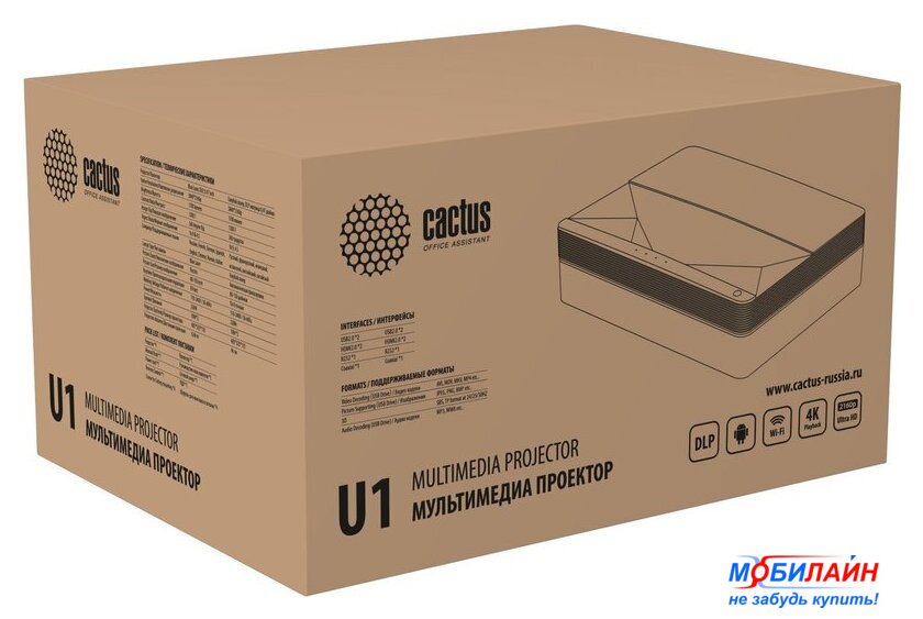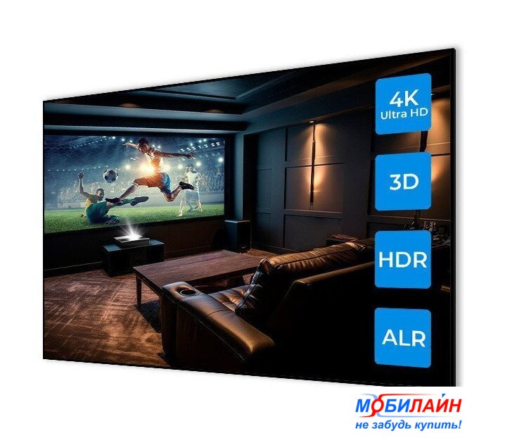матрица DLP, UHD (3840x2160), ламповый, яркость 3800 ANSI лм, контраст 10000:1, расстояние 1-7.5 м, экран 30-300"