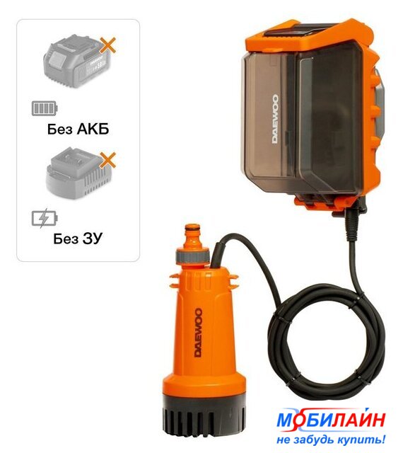 Комплектация | - Насос;- Адаптер для быстросъемного коннектора; - Крепление на стену;- Крюк для фиксации со шлангом;- Инструкция по эксплуатации;- Гарантийный талон.Товар совместим со всеми аккумуляторными батареями и зарядными устройствами DAEWOO линейки 21В |