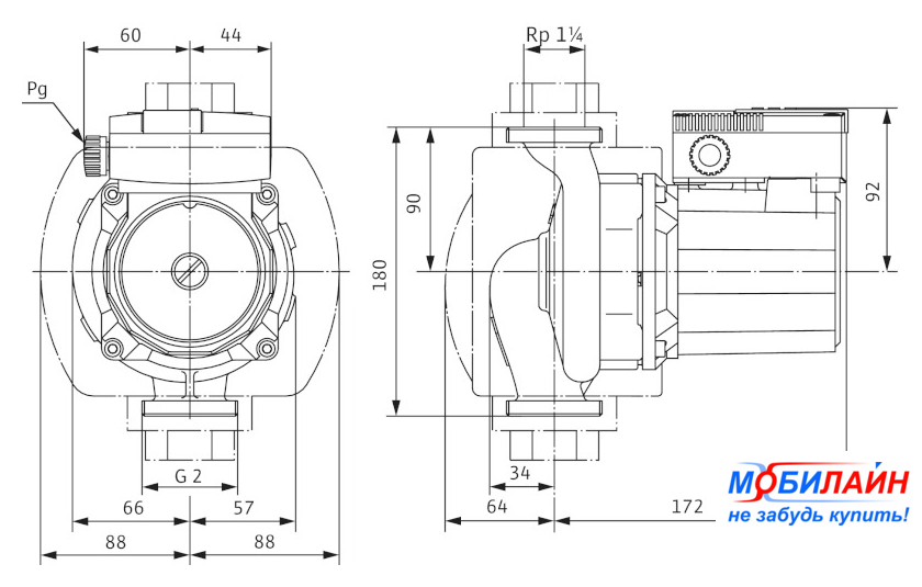 циркуляционный, 24 м³/ч, напор 13.2 м, давление 10 бар