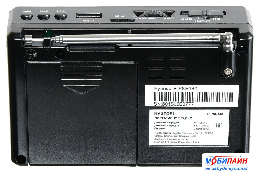 переносной, аналоговый тюнер FM/AM, звук моно 3 Вт