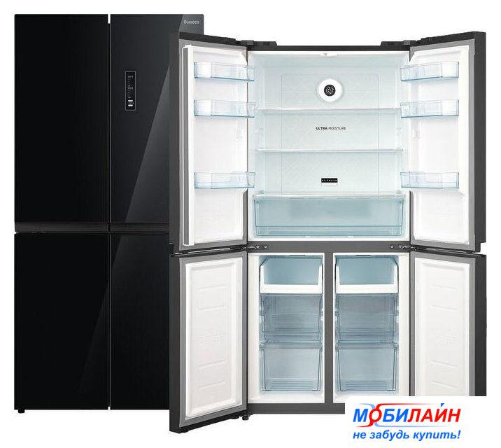 отдельностоящий, полный No Frost, электронное управление, класс A+, полезный объём: 417 л (288 + 129 л), инверторный компрессор, лоток для яиц, отделка: стекло, 83.6x63.6x183 см, синий
