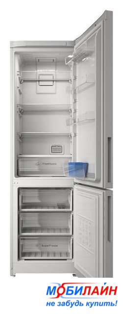 отдельностоящий, No Frost (морозильная камера), механическое управление, класс A+, полезный объём: 312 л (237 + 75 л), перенавешиваемые двери, лоток для яиц, 57.4x62.5x203.4 см, белый