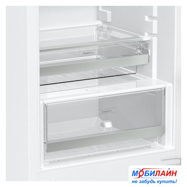 встраиваемый, жесткое, No Frost (морозильная камера), электронное управление, класс A+, полезный объём: 248 л (180 + 68 л), зона свежести, перенавешиваемые двери, полка для вина, лоток для яиц, 54x54.5x177.2 см, белый