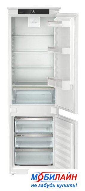 встраиваемый, скользящие направляющие, без No Frost, электронное управление, полезный объём: 271 л (198 + 73 л), перенавешиваемые двери, лоток для яиц, 54x54.9x177.2 см, белый