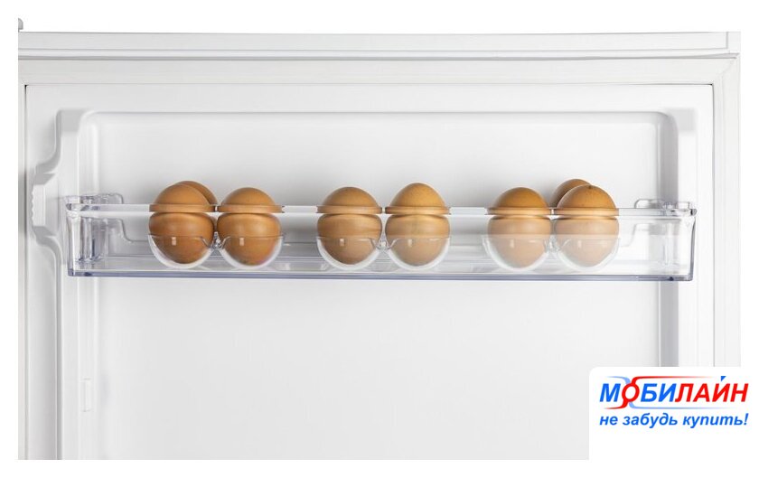 отдельностоящий, без No Frost, электронное управление, класс A+, полезный объём: 270 л (206 + 64 л), перенавешиваемые двери, лоток для яиц, 59.5x62.9x166.8 см, белый