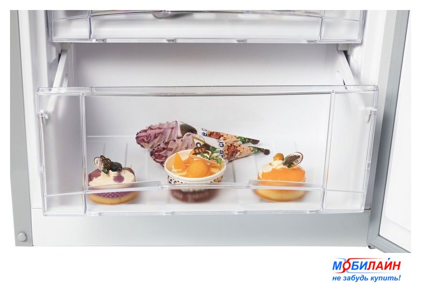 отдельностоящий, No Frost (морозильная камера), механическое управление, класс A+, полезный объём: 244 л (169 + 75 л), перенавешиваемые двери, лоток для яиц, 57.4x62.5x172.4 см, серебристый
