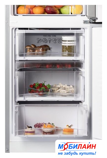 отдельностоящий, No Frost (морозильная камера), механическое управление, класс A+, полезный объём: 244 л (169 + 75 л), перенавешиваемые двери, лоток для яиц, 57.4x62.5x172.4 см, серебристый