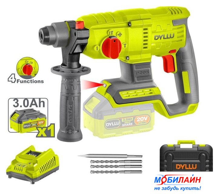 | Комплект поставки | - Перфоратор - 1 шт.- Аккумулятор DTLBP530 3,0 Ач - 1 шт.- Зарядное устройство DTFCP518 - 1 шт.- Дополнительная рукоятка - 1 шт.- Буры 6, 8,10 мм. - 3 шт.- Долото - 1 шт. |