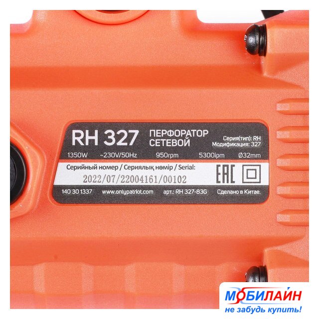 800 Вт, питание: сеть, 5300 ударов/мин, энергия удара: 3 Дж, 3200 г