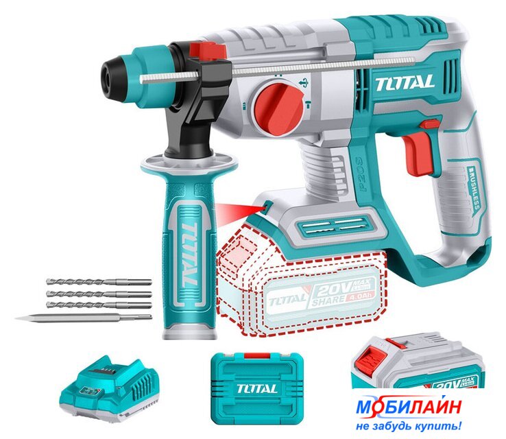 | Комплект поставки | - Перфоратор - 1 шт.- Аккумулятор TFBLI2002 4,0 Ач - 1 шт.- Зарядное устройство TFCLI2001 - 1 шт.- Дополнительная рукоятка - 1 шт.- Ограничитель глубины - 1 шт.- Буры 6x150, 8x150,10x150 мм. - 3 шт.- Долото - 1 шт.- Кейс |