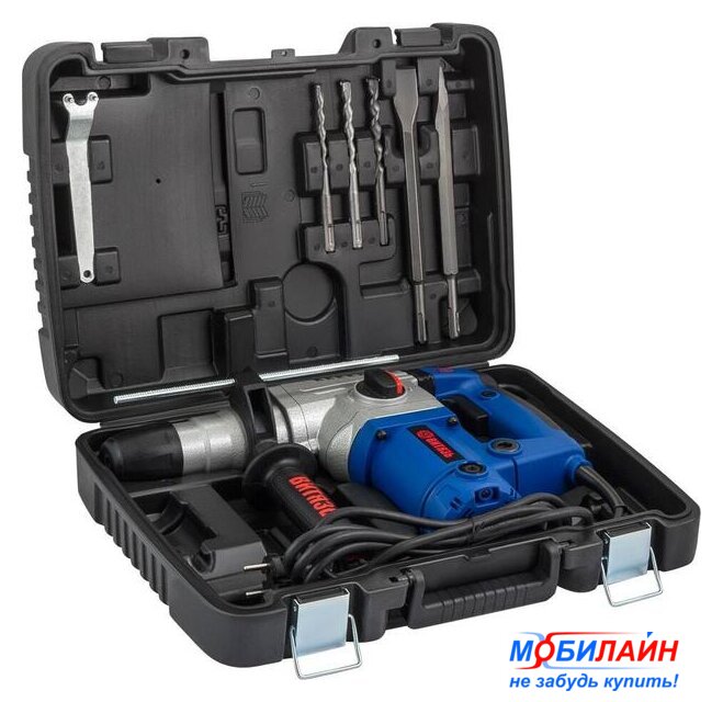 | Комплект поставки | - дополнительная рукоятка- ограничитель глубины сверления- 3 сверла- 2 зубила- документацияПоставляется в пластиковом кейсе |
